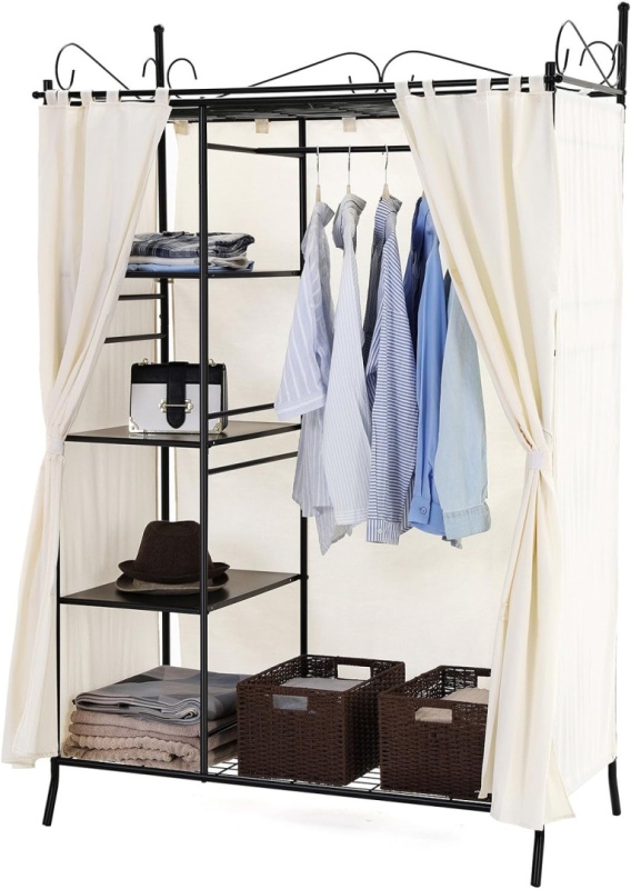 Szafa garderoba z zasłoną składana wieszak półki czarna SONGMICS DUŻA