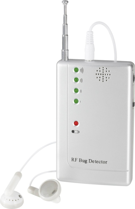 RF Bug Detector wykrywa i lokalizuje podsłuchy w postaci dyktafonów i kamer, które nie tylko nagrywają materiał, ale też jednocześnie wysyłają go do odbiorcy. To właśnie te transmisje w szerokim paśmie od 10 MHz do 6 GHz wyłapuje detektor.