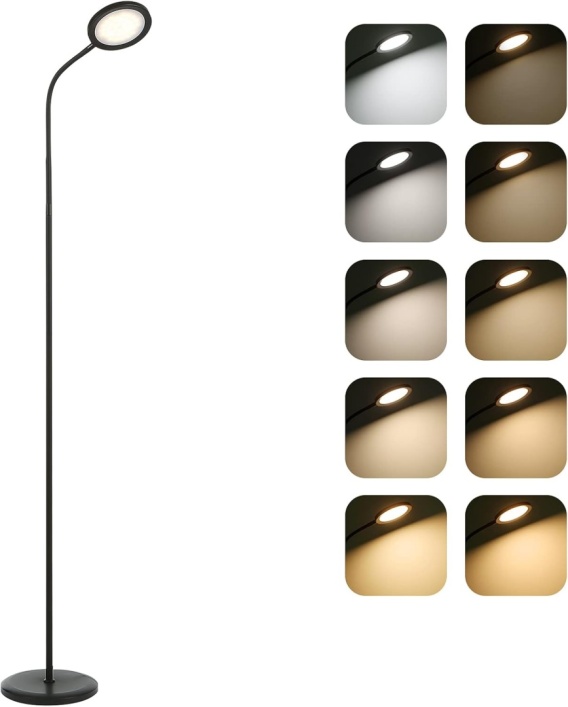Lampa podłogowa Tomshine Touch do czytania, 3 temperatury barwowe i płynna regulacja jasności, nowoczesne stojące lampy LED, oświetlenie zadaniowe do salonu, sypialni, biura, akademika, 15 W