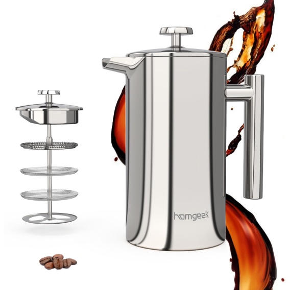 Dwuścienny zaparzacz tłokowy ze stali nierdzewnej firmy Homgeek to doskonały zamiennik tradycyjnego ekspresu do kawy.